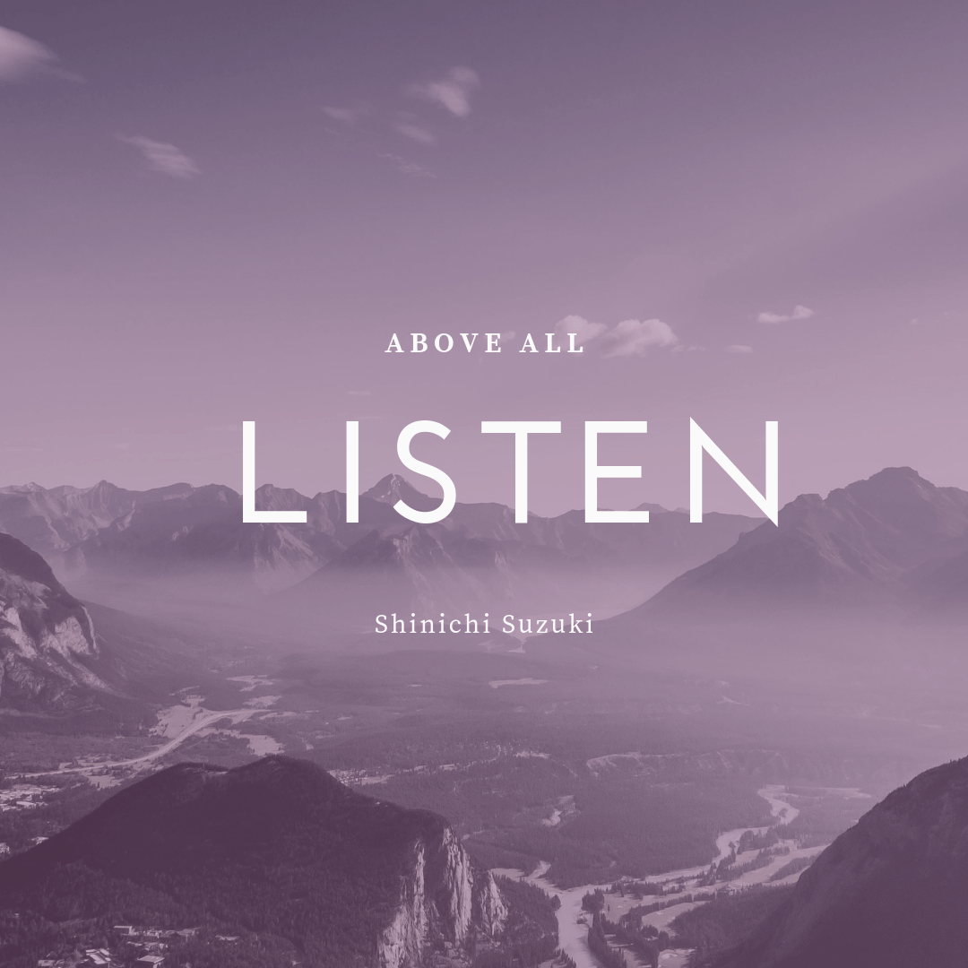 “Above all, listen.” Here at the beginning of another year of teaching, I’m rereading Dr. Suzuki’s book Nurtured by Love. I’ve been reminded of the value of each child. Also, I was again challenged to listen carefully. It’s one of the ways we can communicate care. Stephen Covey a modern time management coach says it this way,